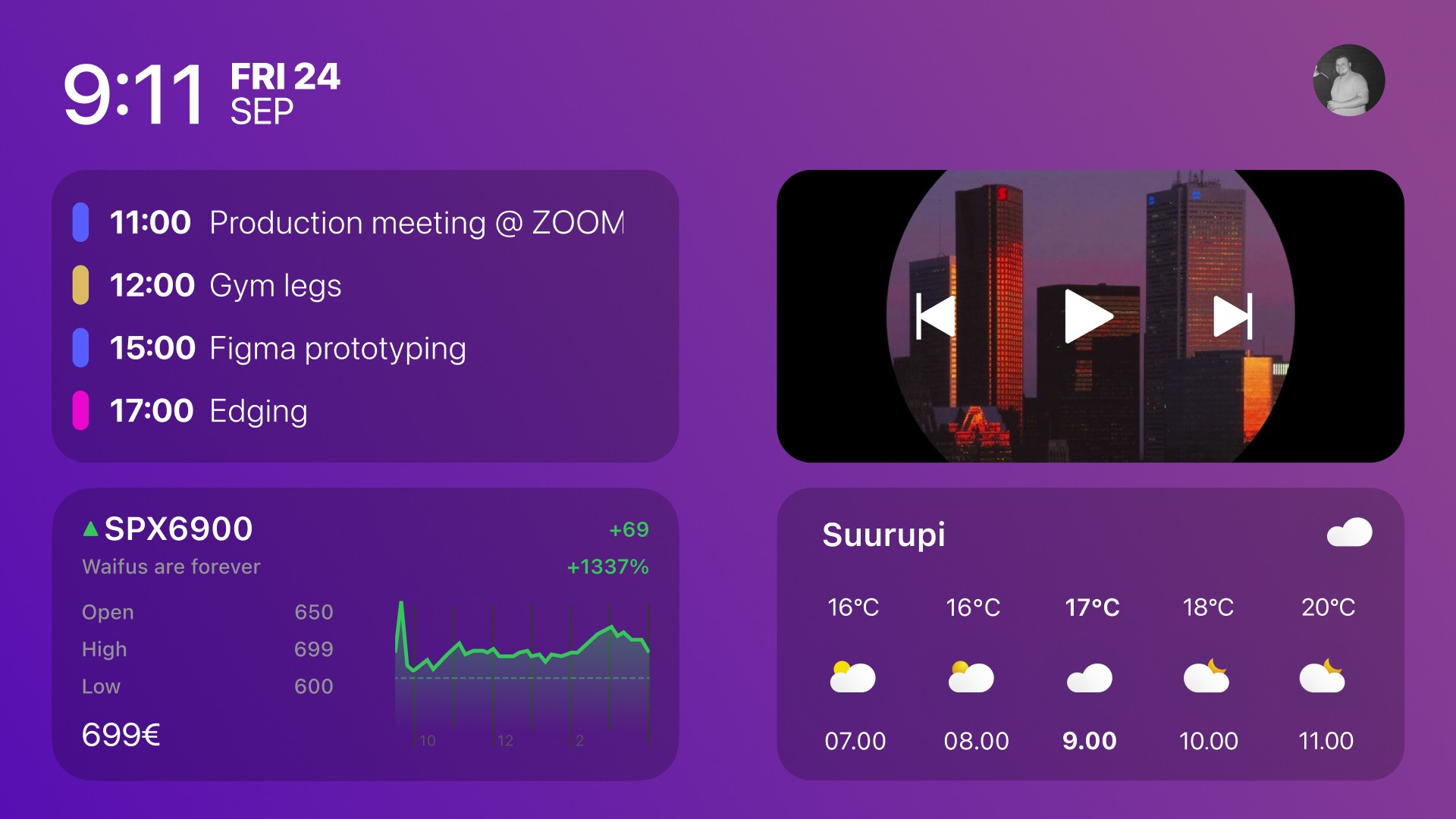 This is simple UI exercise. The idea came to me while working and listening to music on my TV. The goal is to make the TV space more productive and informative.